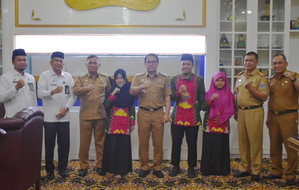 Walikota Metro Wahdi melakukan audiensi dengan Kafilah MTQ yang akan bertanding pada Lomba Musabaqah Tilawatil Qur’an (MTQ) Tingkat Nasional ke XXIX di Banjarmasin, Kalimantan Selatan.