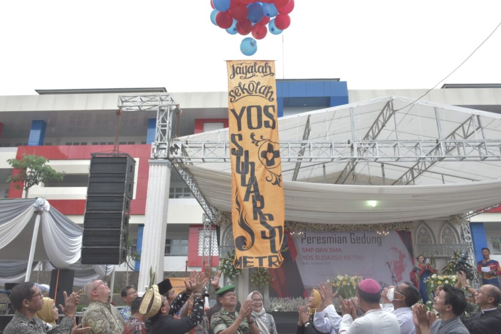 Walikota Metro Wahdi, meresmikan Gedung Yayasan Leo Dehon Pendidikan Katholik SMP dan SMA Yos Sudarso Metro Sabtu, 14/01/2023. Pada peresmian ini dilakukan juga simbolis tanda tangan prasasti, pemukulan gong dan pelepasan balon udara, di halaman sekolah.