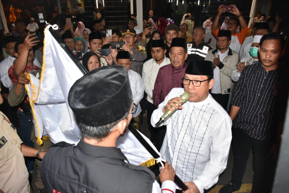 Kepulangan jamaah haji Kota Metro Tahun 2023 dari Tanah Suci Kloter 36 sebanyak 392 jamaah disambut langsung oleh Walikota dr. Wahdi dan Wakil Walikota Qomaru Zaman, dan keluarga jamaah dengan penuh sukacita dan gembira, di halaman Masjid Taqwa pinggir jalan senin (17/7/2023) malam.