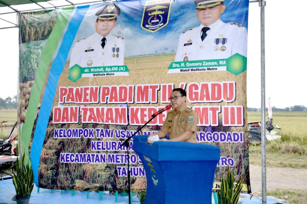 Pada kesempatannya, Wahdi menyampaikan selamat kepada para petani di Kota Metro, khususnya pada Kelompok Tani Usaha Makmur Margodadi yang telah berhasil melakukan tanam padi pada musim tahap II/ gadu.