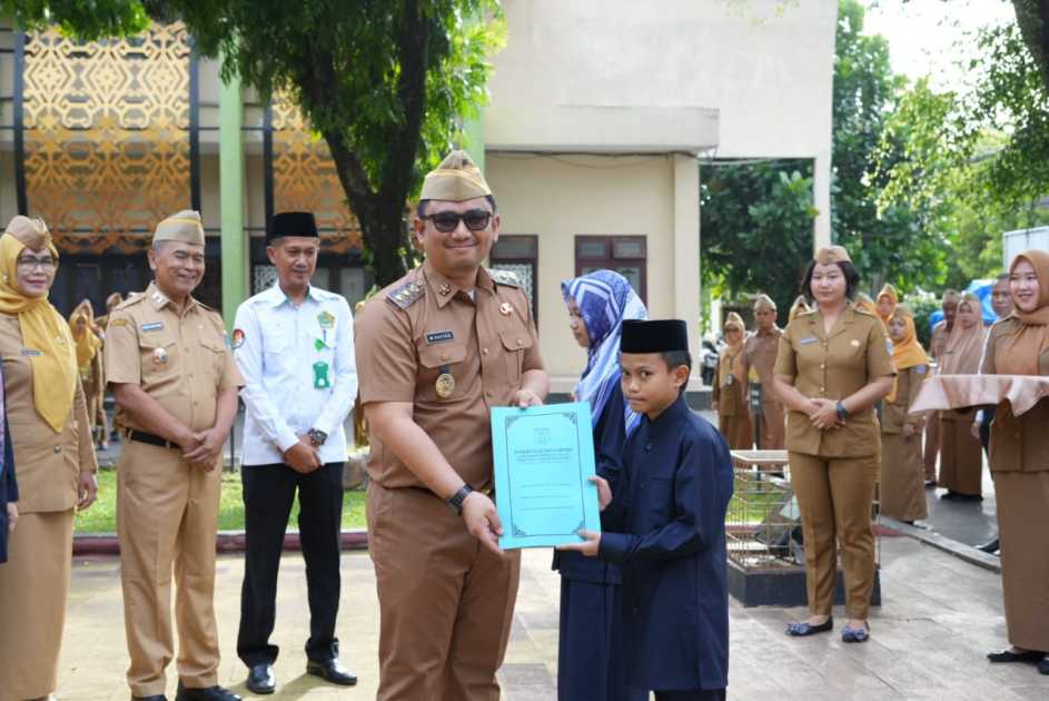 Wakil Wali Kota Metro, M. Rafieq Adi Pradana, memimpin apel mingguan sekaligus melakukan pelepasan resmi kafilah peserta Musabaqah Tilawatil Qur’an (MTQ) ke-52 tingkat Provinsi Lampung, yang digelar di halaman Kantor Pemerintah Daerah Kota Metro, Senin (08/12/2025).