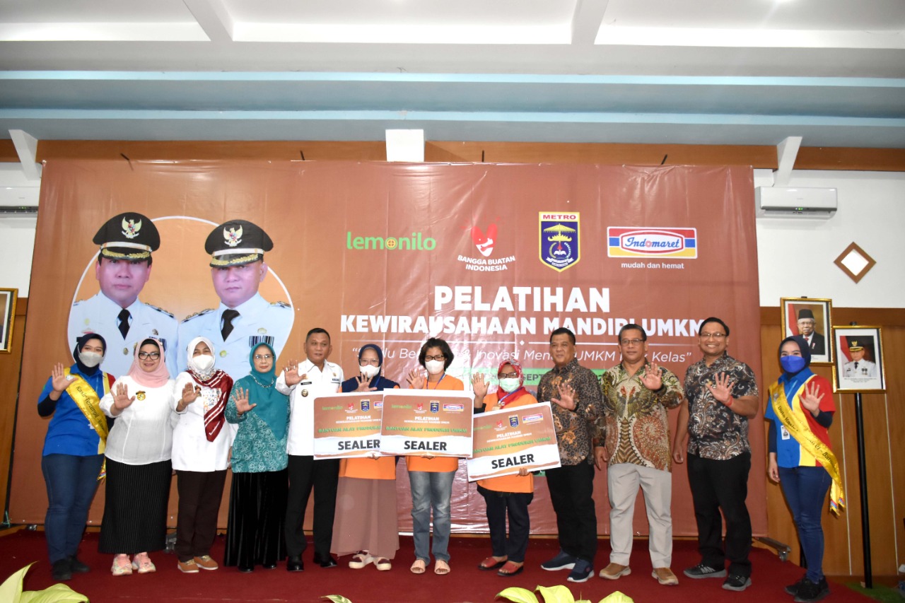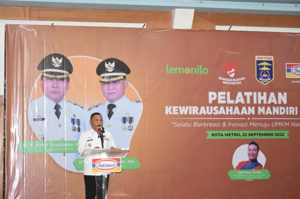 Kepala Dinas Koperasi, UMK, UM dan Perindustrian Kota Metro, Siti Aisyah, melaporkan bahwa Pelatihan Kewirausahaan Mandiri UMKM, merupakan kegiatan kolaborasi antara Pemerintah Kota Metro dengan PT. Indomarco Prismatama di Kota Metro yang diikuti oleh 75 peserta.