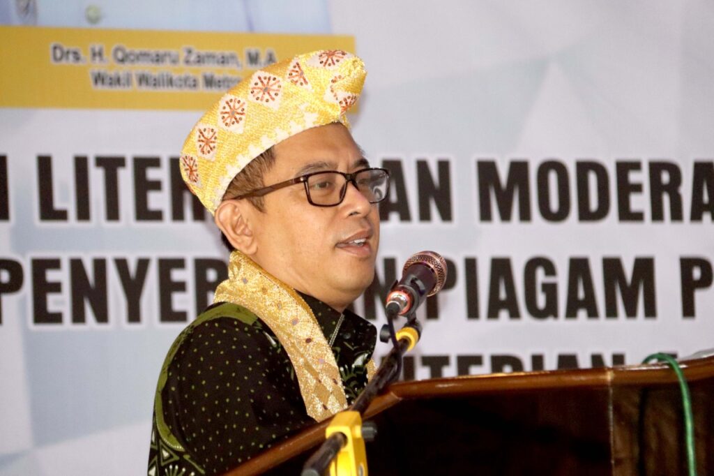 Wakil Walikota Metro Qomaru Zaman, menghadiri penyerahan piagam penghargaan, pada pembinaan ASN penguatan literasi modernisasi beragama, acara berlangsung di Aula MAN 1 Kampus 2 Lampung Timur, Kamis 21/7/2022.