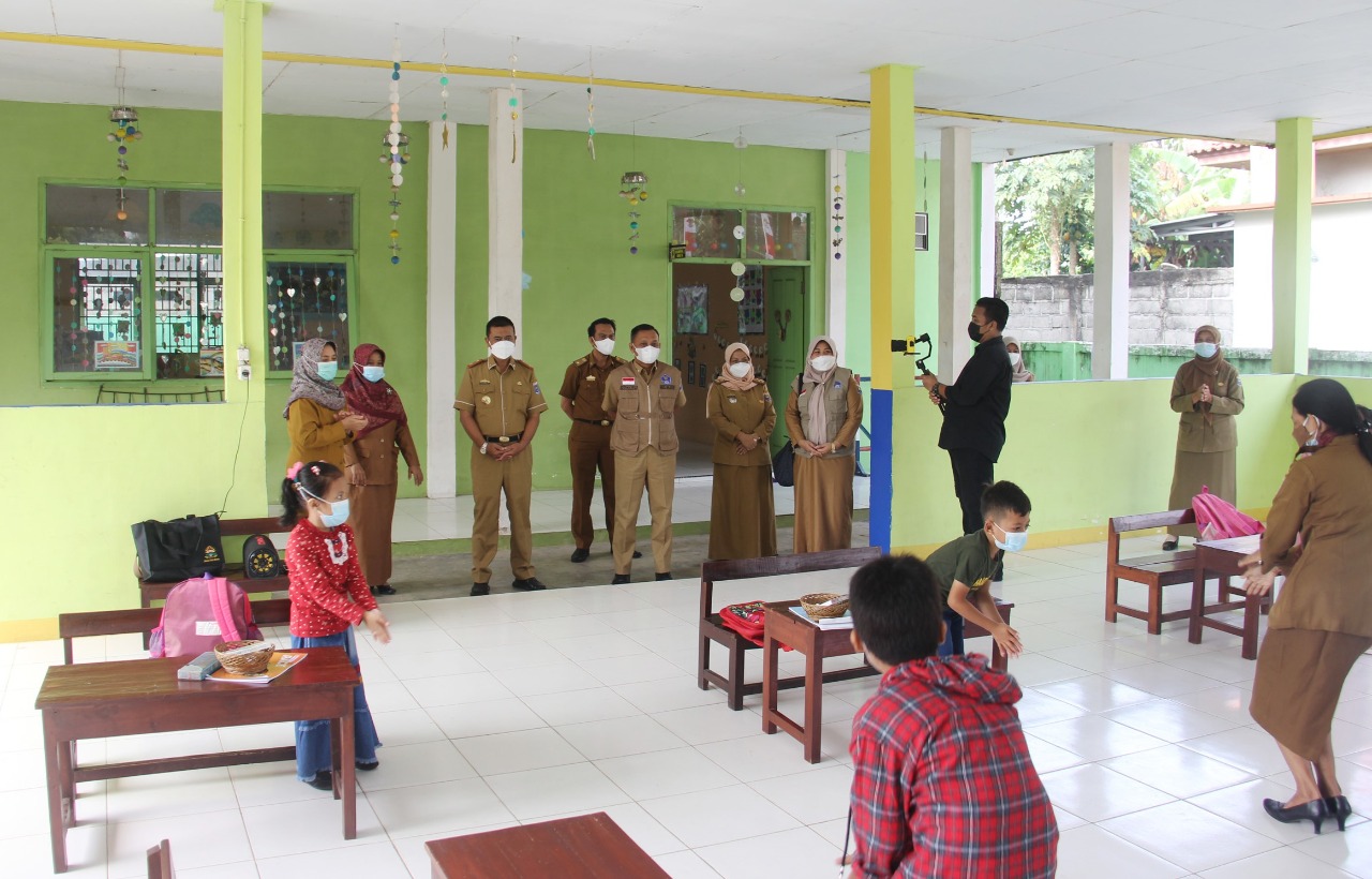 Wakil Walikota Metro bersama dengan Sekda Kota Metro meninjau simulasi Pembelajaran Tatap Muka (PTM) di sejumlah sekolah jelang pemberlakuan belajar tatap muka, Senin (30/08/2021).