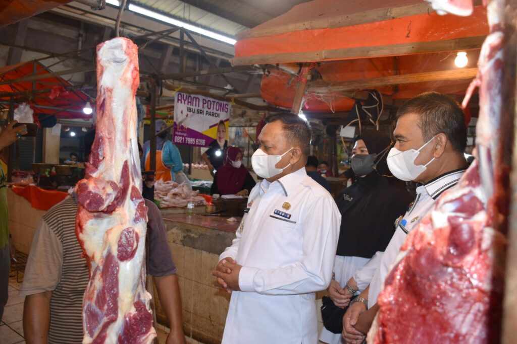 Wakil Walikota Metro Qomaru Zaman didampingi Sekda Kota Metro dan jajarannya, lakukan peninjauan penetrasi pasar Margorejo dan pasar Kopindo yang diadakan Pemerintah Kota Metro, dalam rangka menyambut Bulan Suci Ramadhan tahun 2022, Rabu (30/03/2022).