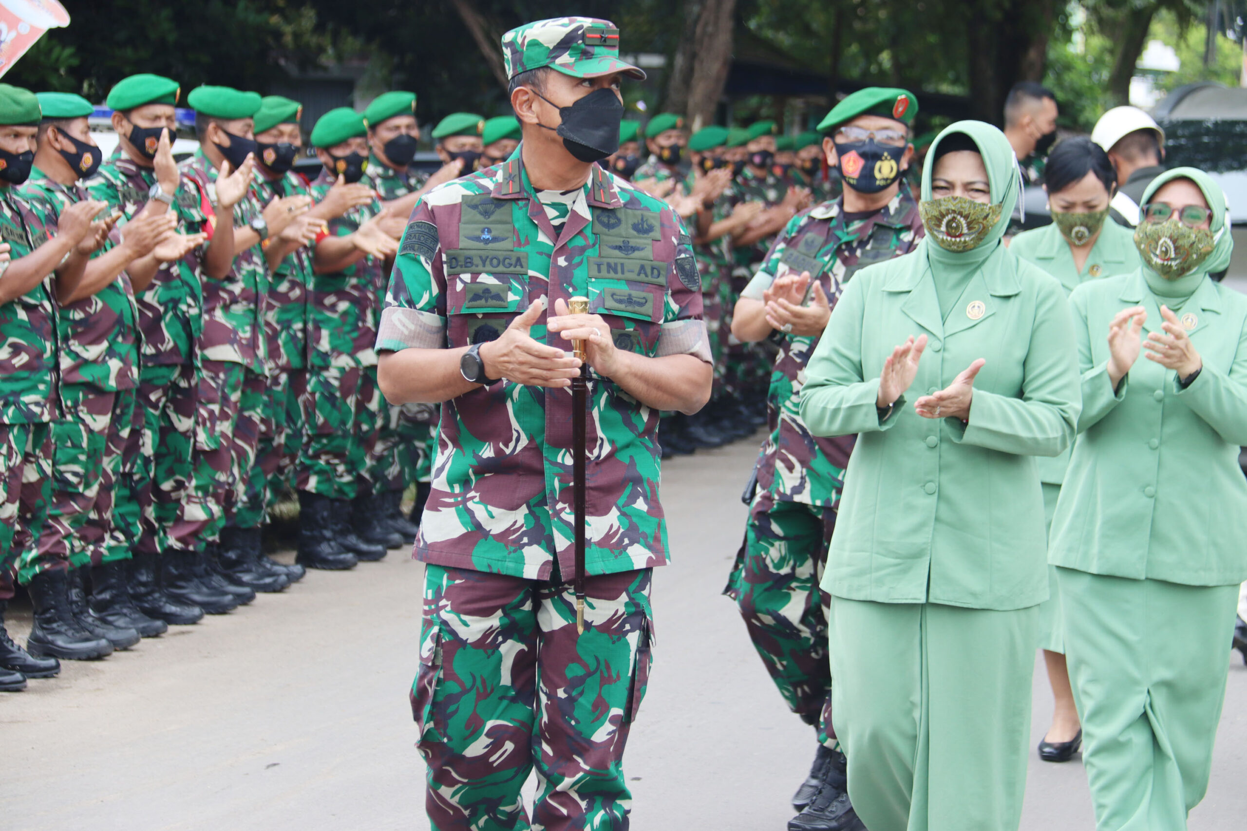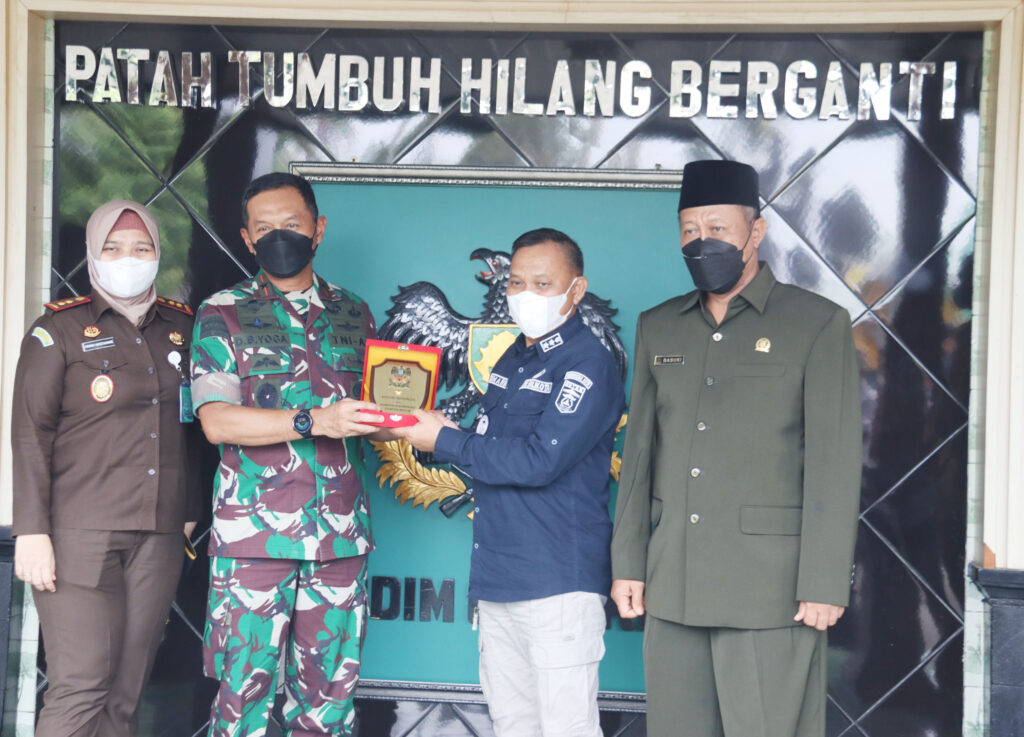 Wakil Walikota Metro Qomaru Zaman menyambut kedatangan Komandan Korem (Danrem) 043/Garuda Hitam Brigjen TNI Drajad Brima Yoga, S.I.P., M.H.,. Turut hadir Ketua Persit KCK Koorcab Rem 043 PD II/Sriwijaya, Epie Drajad Brima Yoga, di Makodim 0411/KM, Senin (31/01/2022).