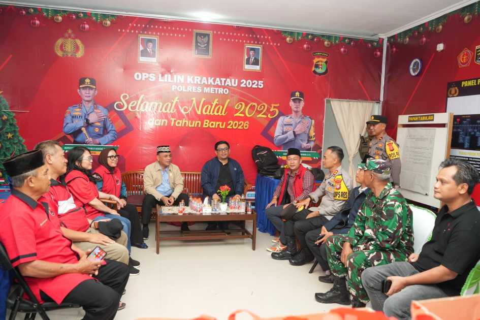 Wali Kota Metro H. Bambang Iman Santoso bersama Wakil Wali kota Metro Rafieq dan Fokorpimda, melakukan pemantauan keamanan dan ketertiban lalu lintas dan ibadah Misa Natal, Minggu, 24/12/25.