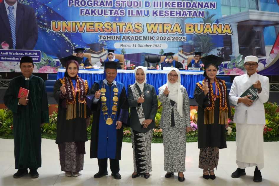 Hubungan baik antara Pemerintah Kota (Pemkot) Metro dan Universitas Wira Buana Metro kian erat, hal ini terlihat dalam kegiatan Wisuda 50 Mahasiswi Program Studi D-3 Kebidanan Fakultas Ilmu Kesehatan Universitas Wira Buana Metro, yang digelar di Gedung Sessat Agung Bumi Sai Wawai, Sabtu (11/10/2025).