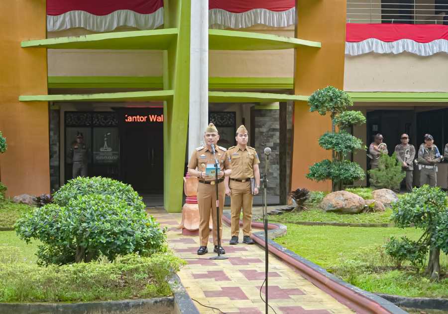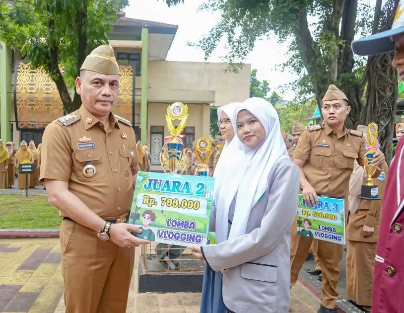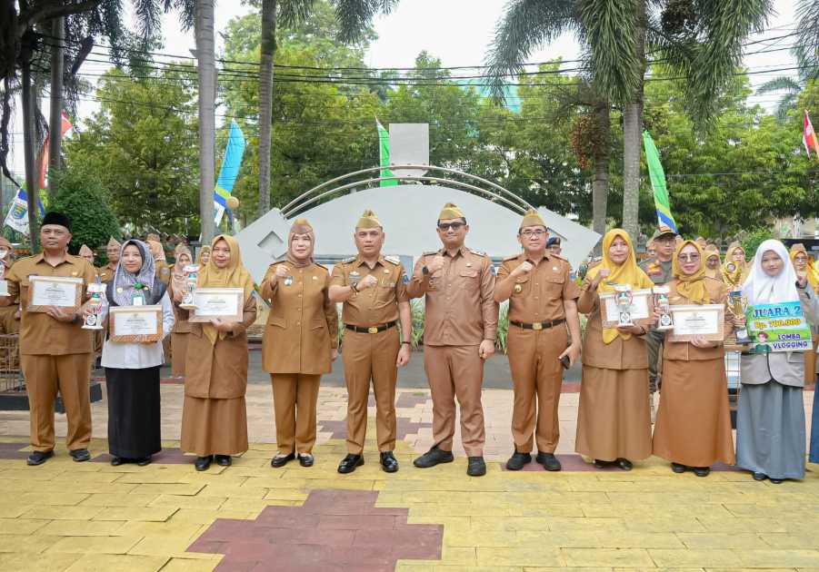 Wali Kota Metro, Bambang Iman Santoso, memimpin Apel Mingguan yang dirangkaikan dengan penyerahan Penghargaan Adiwiyata dan Hadiah Lomba Vlogging Lingkungan bagi siswa/siswi tingkat SMA sederajat se-Kota Metro.