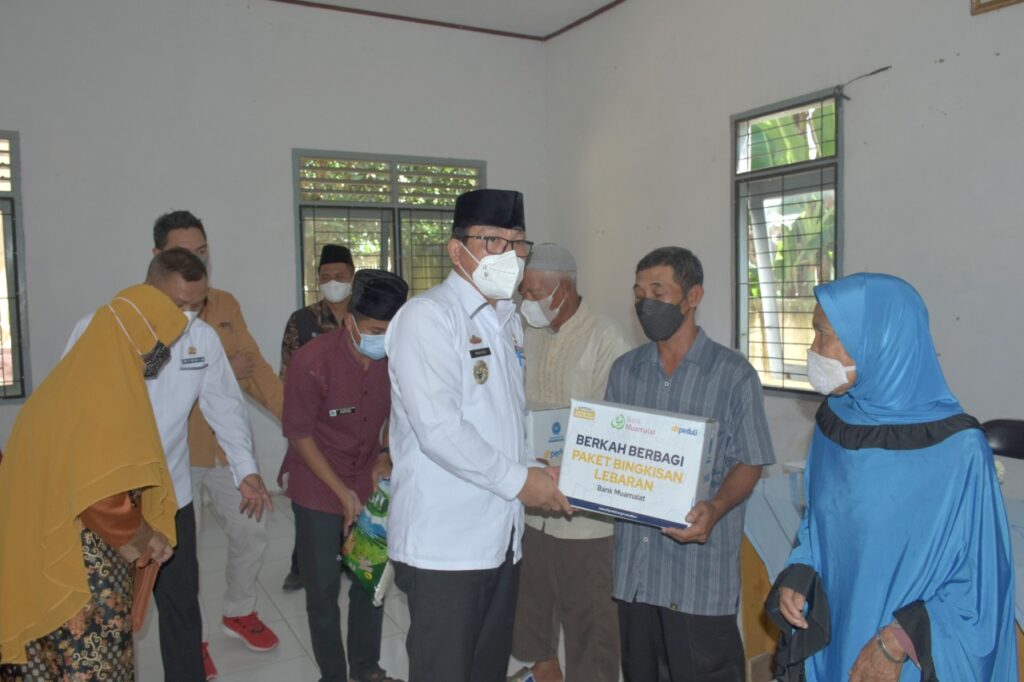 Walikota Metro Wahdi bersama Wakil Walikota Qomaru Zaman hadiri acara Berkah Berbagi Paket Bingkisan Lebaran Darul Tauhid (DT) Peduli kepada Juru Kunci dan Tim Penggali Kubur se-Kota Metro, yang didukung oleh Bank Muamalat dan DT Peduli, berlangsung di Aula Kecamatan Metro Barat, Kamis (28/04/2022).