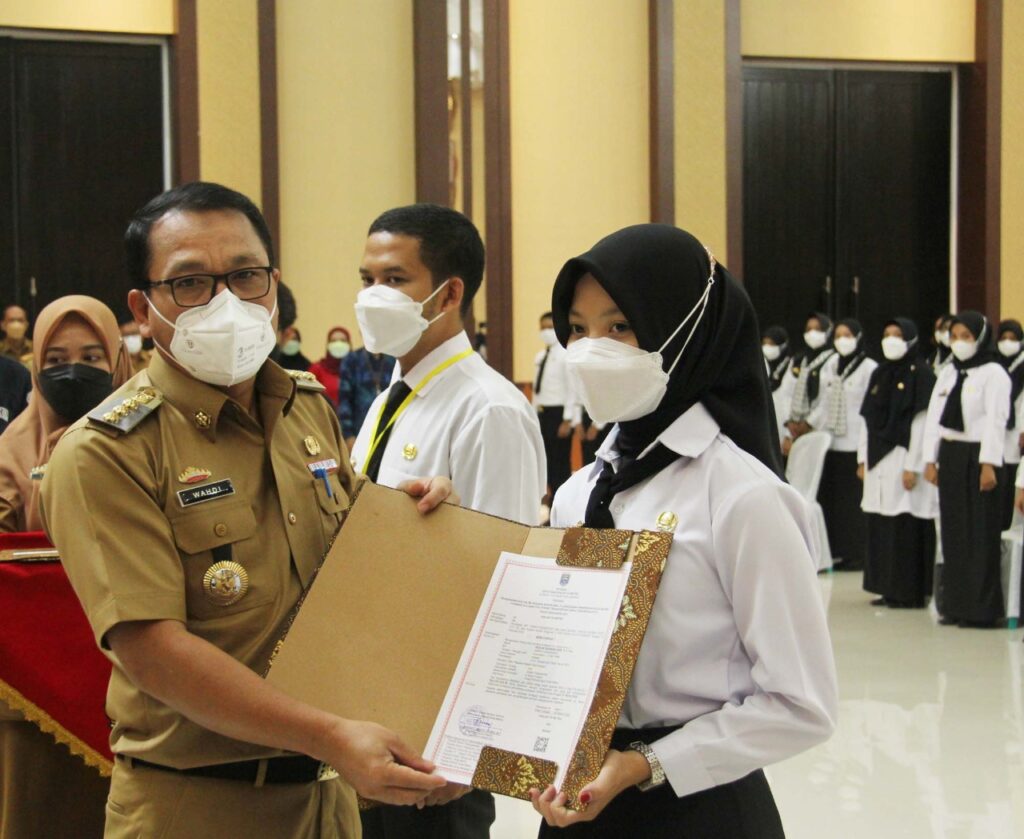 Dalam hal ini, Walikota Metro Wahdi mengucapkan selamat kepada CPNS dan PPPK yang baru saja menerima SK pengangkatan Tahun Anggaran 2021.