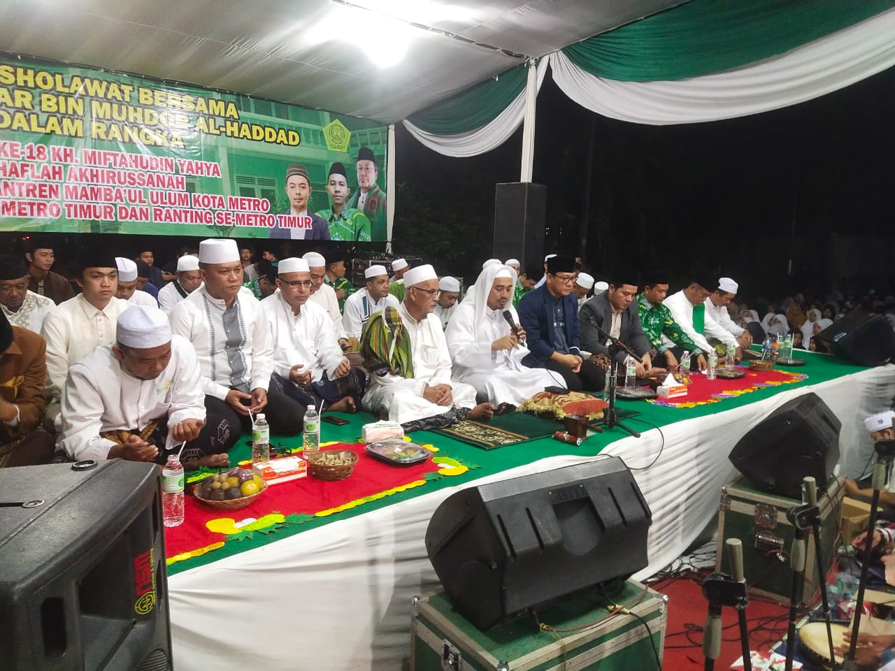 Sementara itu, Walikota Metro Wahdi memanjatkan puji syukur kepada Allah SWT, karena dapat melaksanakan sholawat bersama Habib Umar Bin Muhdor Al Hadad beserta rombongan.