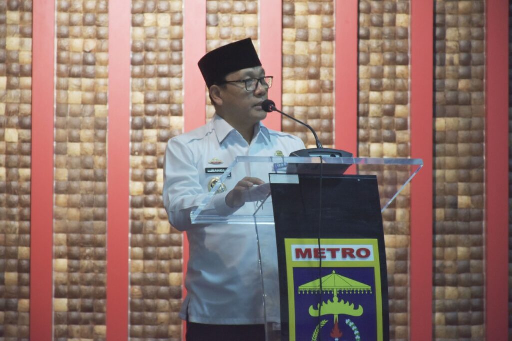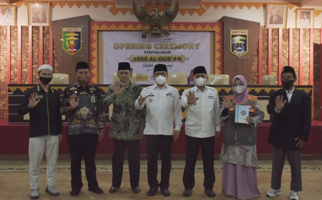 Walikota Metro bersama Wakil Walikota Metro menghadiri Opening Ceremony Penyaluran 5000 Al-Qur’an untuk Lampung yang berlangsung di Aula Pemerintah Kota Metro, Kamis (21/07/2022).