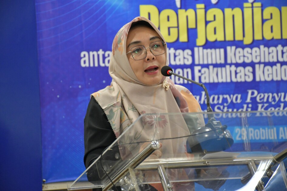 Dekan FK Unila Dr. dr. Evi Kurniawaty, S.Ked., M.Si mengucapkan terima kasih kepada Walikota dan Wakil Walikota Metro yang sudah berkenan hadir dalam penyelesaian tanda tangan kerjasama yang memang sudah kita rencanakan dari jauh hari ini.