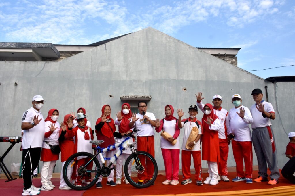 Pada kesempatan itu Walikota Metro Wahdi turut membagikan beberapa hadiah hiburan dan doorprize berupa satu unit sepeda bagi peserta senam yang dapat menjawab pertanyaan seputar YJI.