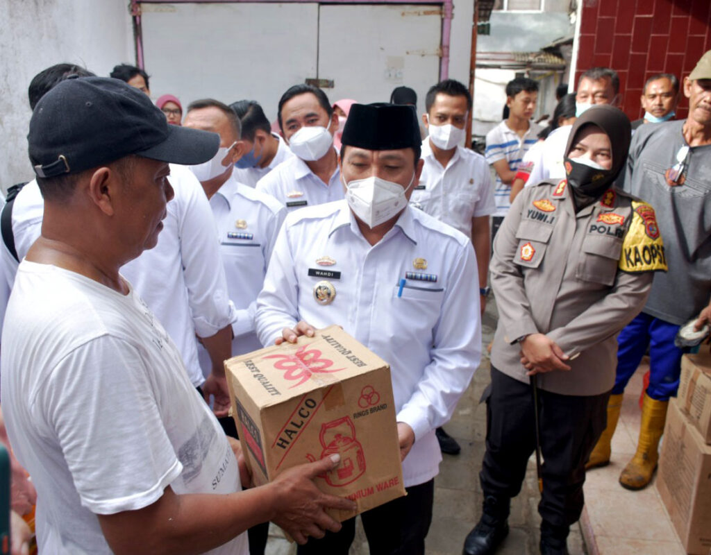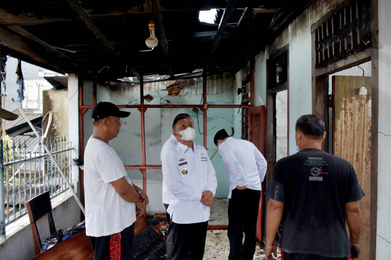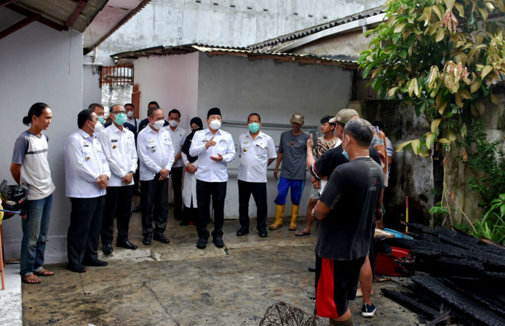 Walikota Metro Wahdi Siradjuddin dan Wakil Walikota Metro Qomaru Zaman beserta jajaran, melakukan peninjauan lokasi rumah kebakaran di kediaman Ibu Kartila (83 Tahun). Kebakaran ini terjadi di Jl. Wijaya Kusuma Gg. Seroja, Metro Pusat, Kota Metro, Jumat 28/4/2022.