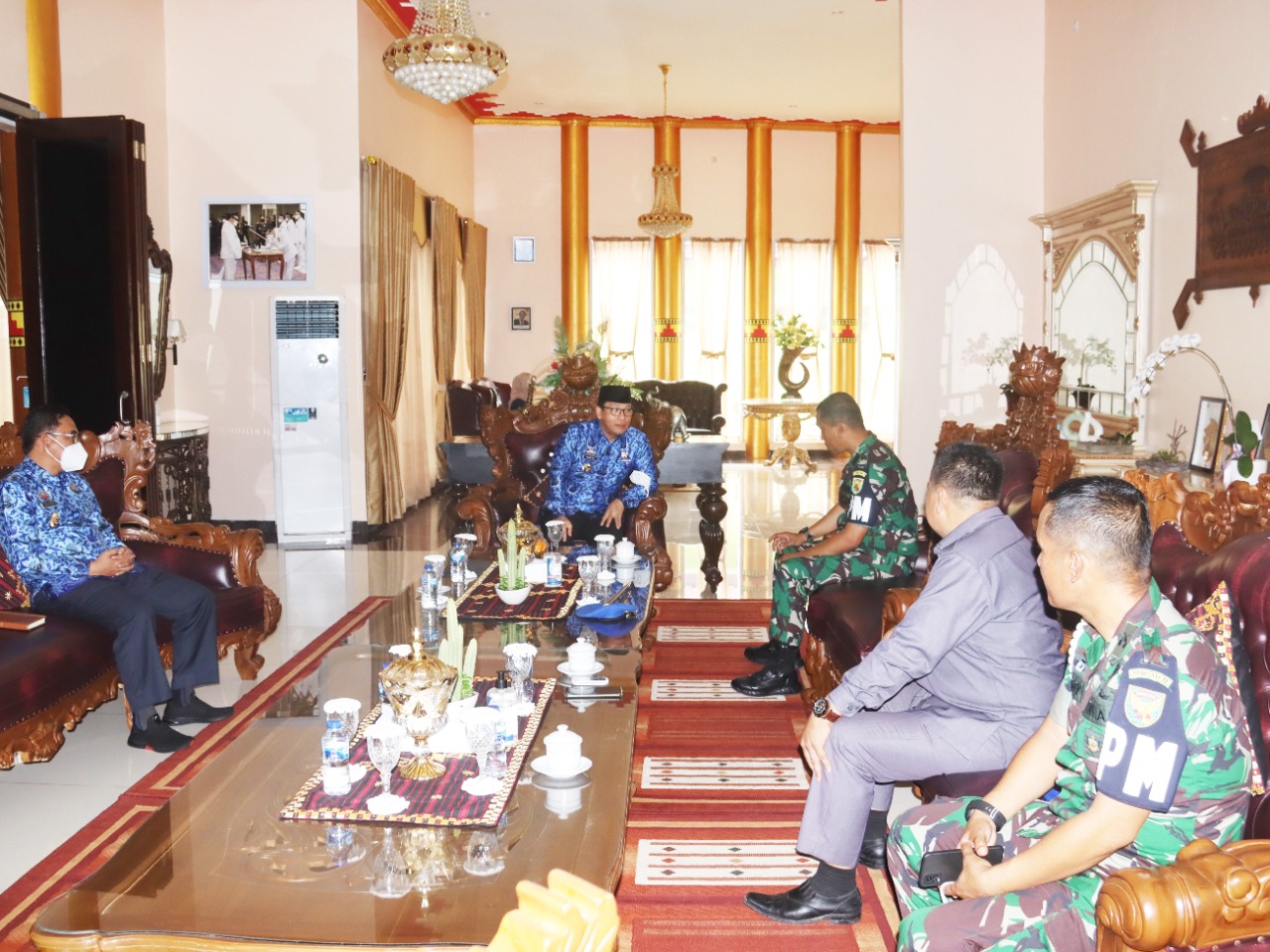 Walikota Metro menerima audiensi dari Komandan Datasemen Polisi Militer (Dandenpom) II/3 Lampung dan staf khusus Kemenhan di Lampung, pertemuan berlangsung di Rumah Dinas Walikota Metro, Senin (17/01/2022).