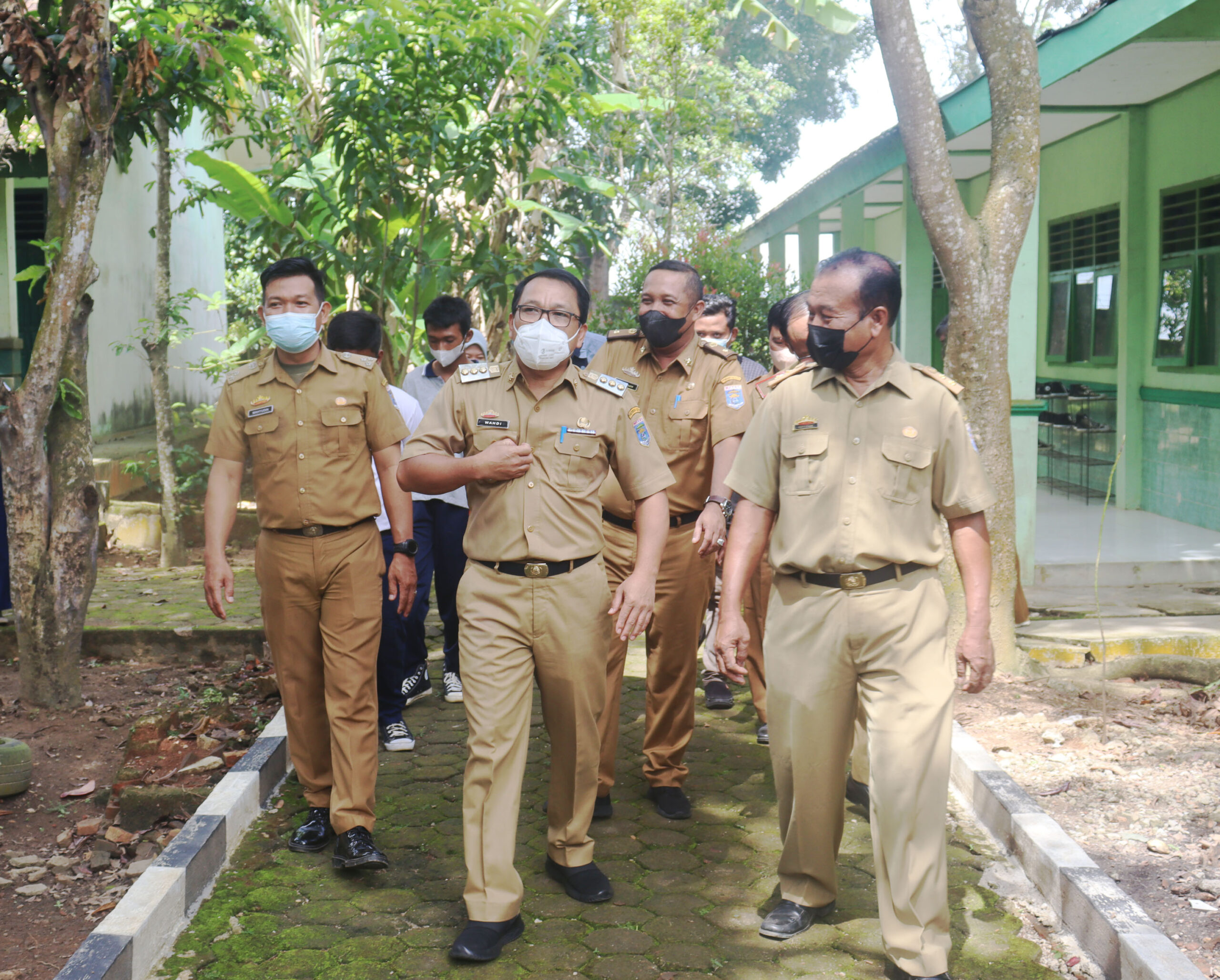 Walikota Metro Wahdi Siradjuddin beserta jajarannya, meninjau infrastruktur sekolah-sekolah yang akan dilakukan renovasi. Mulai dari desain, kemanfaatan, hingga kualitasnya, Selasa, 08/03/2022.