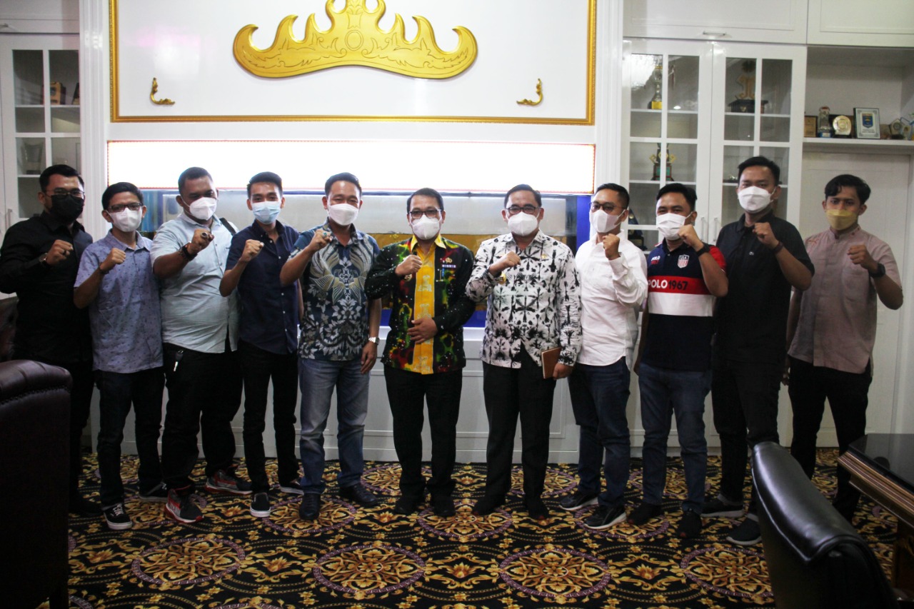 Walikota Metro didampingi Asisten II Sekda Kota Metro lakukan audiensi dengan Asosiasi Pelaksana Konstruksi Nasional (ASPEKNAS) Kota Metro, di Ruang Kerja Walikota, Jumat (14/1/2022).