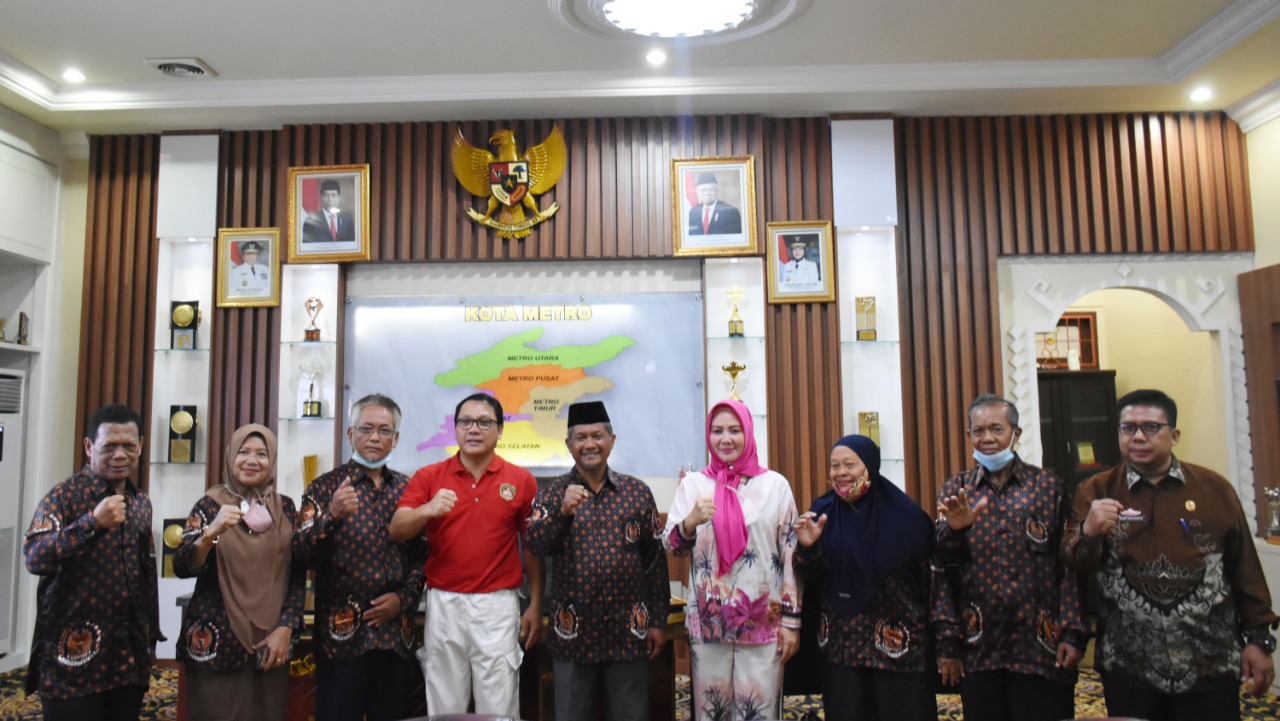 Walikota Metro Wahdi melakukan audiensi dengan Dewan Harian Cabang Badan Pembudayaan Kejuangan 45, berlangsung di Ruang Kerja Walikota setempat, Jumat (26/08/2022).