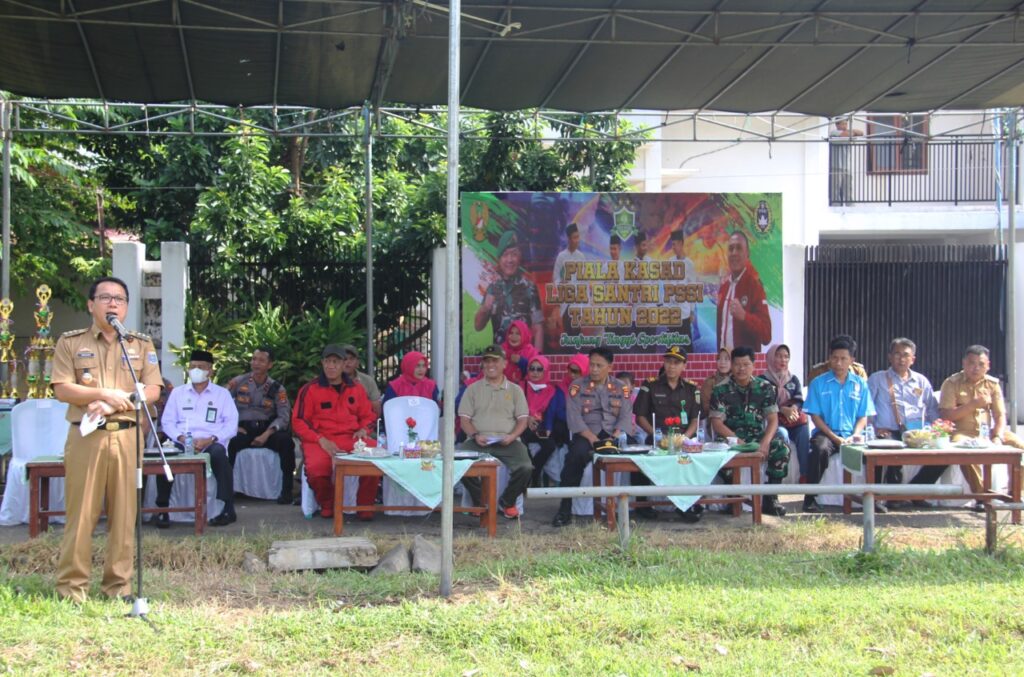 Walikota Metro menghadiri Pembukaan Piala Kasad Liga Santri PSSI Tahun 2022 yang berlangsung di Lapangan Sepakbola 22 Kelurahan Hadimulyo Barat, Kota Metro, Senin (20/06/2022).