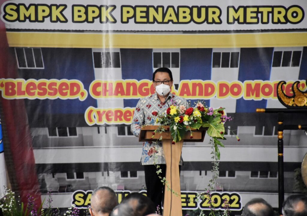 “Pada acara ini saya juga ingatkan bahwa, sesuai dengan visi Pembangunan Kota Metro terwujudnya Kota Metro Berpendidikan, Sehat, Sejahtera dan Berbudaya, kita harus bersinergi melakukan berbagai langkah-langkah kongkrit untuk merealisasikan. Sejalan dengan visi pembangunan tersebut, maka pembangunan gedung SMPK BPK Penabur Metro, harus kita syukuri dan disambut dengan baik,” ujarnya.