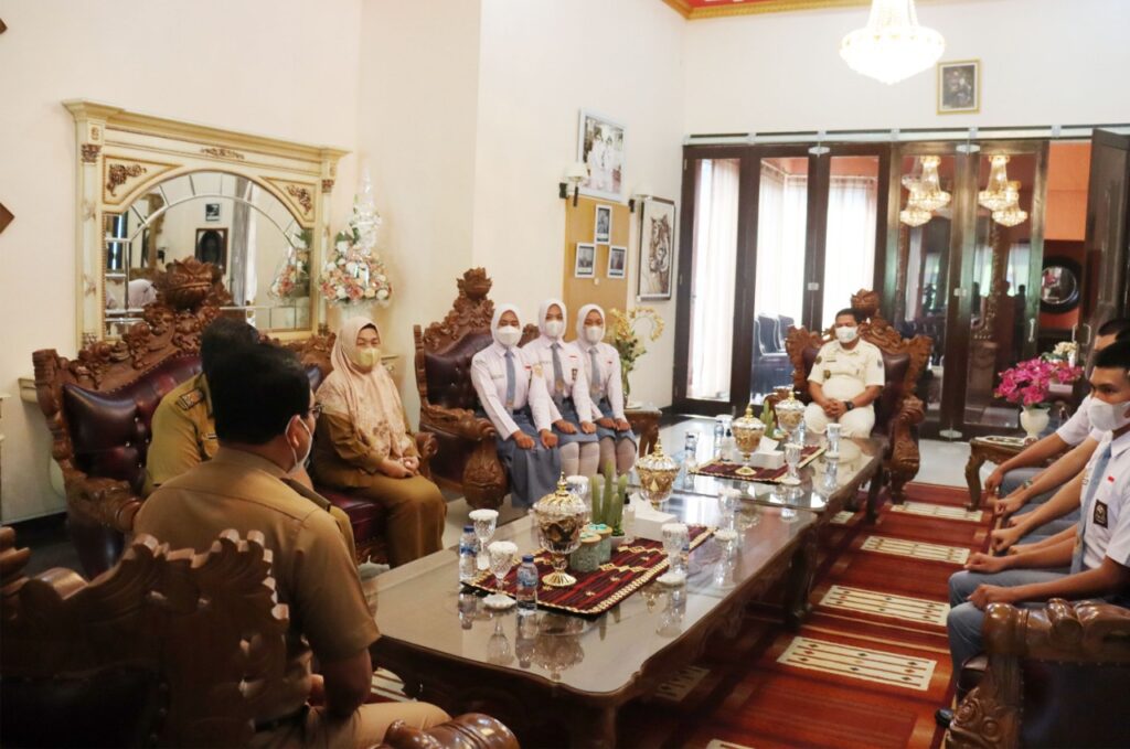 Walikota Metro Wahdi Siradjuddin, melepas calon Paskibraka Provinsi Lampung utusan Kota Metro. Pelepasan 7 orang calon Paskibraka, ini dilakukan di Rumah Dinas Walikota, Selasa (10/05/2022).
