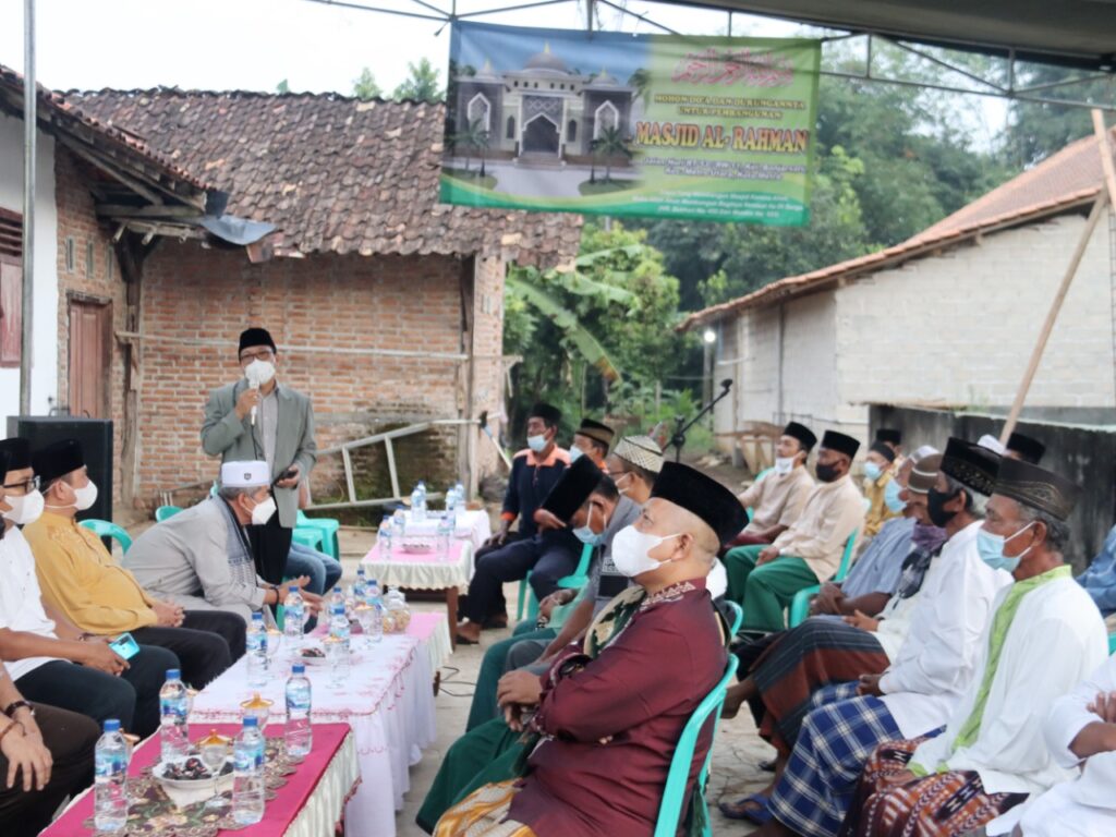 Usai Sholat subuh berjamaah dan ramah tamah, acara dilanjutkan dengan peletakan batu pertama pembangunan masjid Al-Rahman, “Mari kita bersama masyarakat bergotong-royong untuk pembangunan masjid ini, semoga masjid Al-Rahman ini bisa segera selesai. Kepada masyarakat agar selalu menjaga kesehatan, kebersihan lingkungan sekitar kita dan budayakan buang sampah pada tempatnya.” ajak Wahdi.