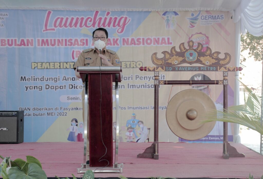 Walikota Metro Wahdi Siradjuddin, menghadiri pada Launching Bulan Imunisasi Anak Nasional (BIAN) Kota Metro Tahun 2022, serta dilanjutkan dengan Peresmian Taman Toleransi SD Xaverius Metro. Kedua acara ini berlangsung di SD Xaverius Kota Metro, Senin 23/5/2022.