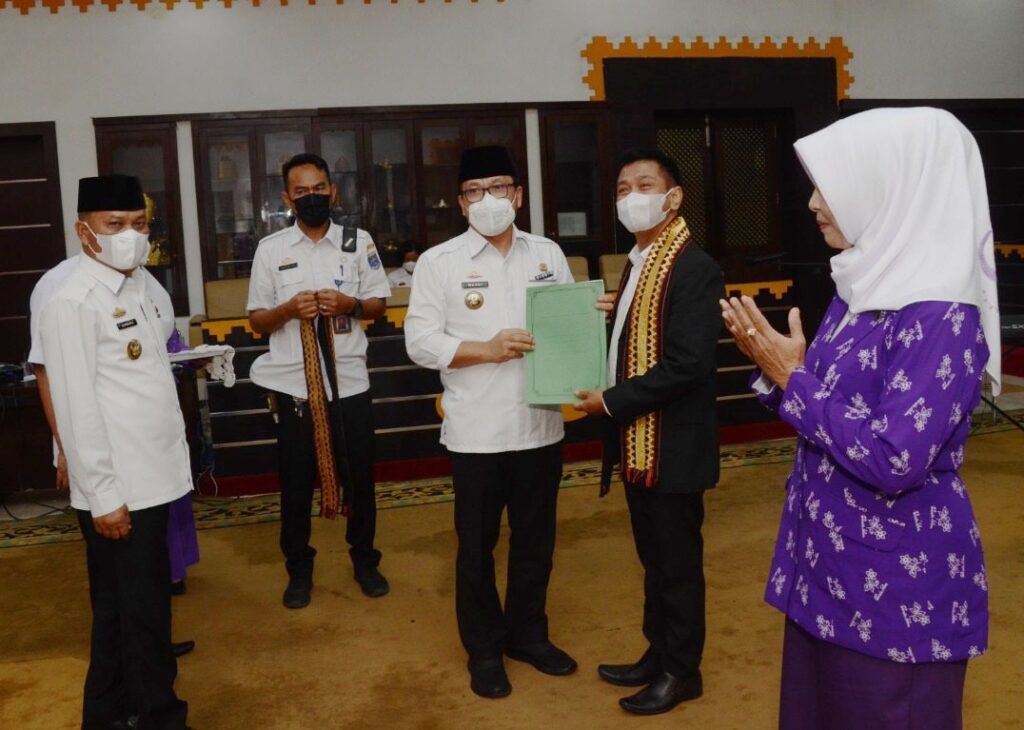 Walikota Metro, Wahdi melepas peserta tim paduan suara wanita islam dalam rangka memperingati Milad Wanita Islam Indonesia di Aula Pemerintah Kota Metro, Rabu (29/06/2022).