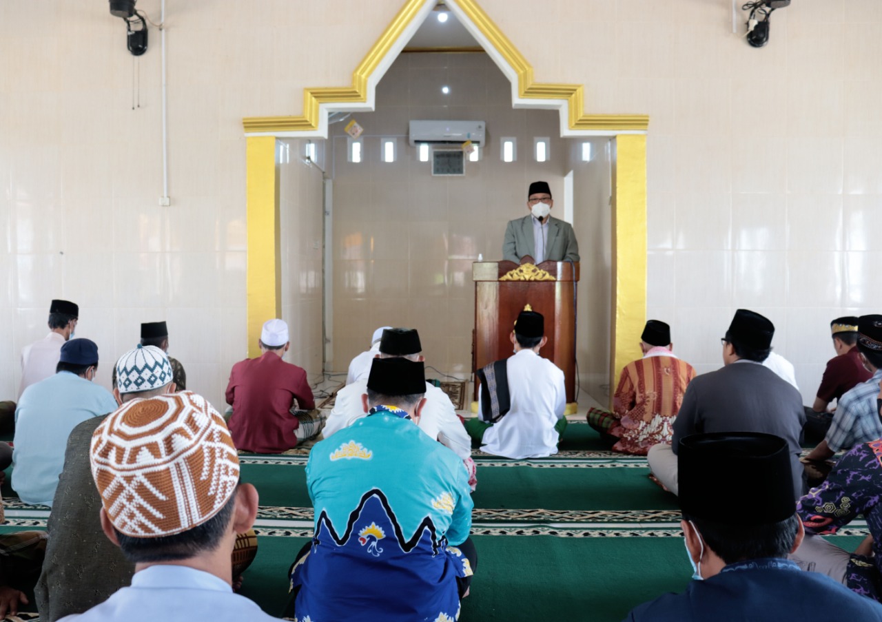 Walikota Metro Wahdi melaksanakan Salat Jumat sekaligus menjadi Khatib di Masjid Nurul Ikhlas, Jl. Buay Selagai, Kelurahan Hadimulyo Timur Kecamatan Metro Pusat, Jumat 18/03/2022.