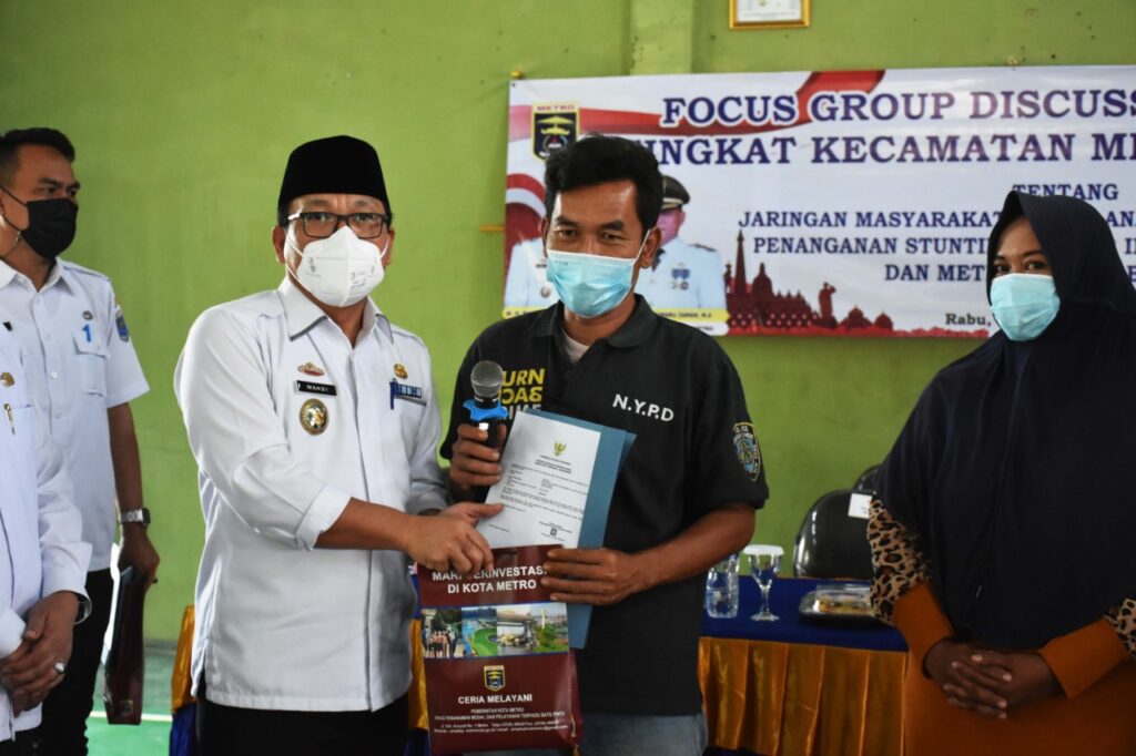 Walikota Metro menjadi Narasumber Pada Focus Group Discussion (FGD) Tingkat Kecamatan Metro Utara, tentang Program Jaringan Masyarakat Peduli Anak dan Ibu (JAMA-PAI), Metro Bangga Beli (MB2), Penanganan Stunting, dan Nomor Induk Berusaha (NIB), berlangsung di Aula Kecamatan Metro Utara, Rabu (24/8/2022).