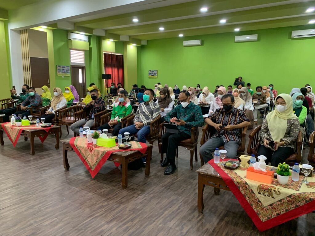 Walikota Metro memberikan sambutan sekaligus menjadi narasumber pada Seminar Bimtek Nasional Tuntas Pengelolaan Sisa Kemasan Farmasi Sesuai Regulasi mendorong penilaian Akreditasi dan Green Hospital Bertema “Presentasi Program Metro Kota Sehat” yang berlangsung di Auditorium RSUD Jend. Ahmad Yani Kota Metro, Sabtu (21/05/2022).