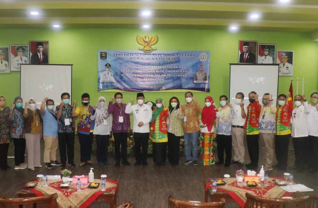 Walikota Metro Wahdi Siradjuddin, menyambut kehadiran Tim Asestor Visitasi dalam Visitasi Penetapan Rumah Sakit Pendidikan Utama Kementerian Kesehatan Republik Indonesia pada UPTD RSUD Jend. A. Yani Metro. Acara ini berlangsung di ruang Aula Diklat RSUD Jendral Ahmad Yani Metro, Kamis 19/5/2022.