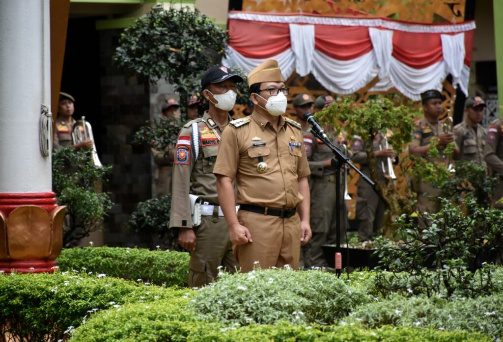 Walikota Metro pimpin Apel Mingguan Pemerintah Kota Metro, dilanjutkan pemberian penghargaan dan hadiah lomba peringatan HUT RI ke-77, yang berlangsung di Halaman Kantor Walikota Metro, Senin (22/08/2022).