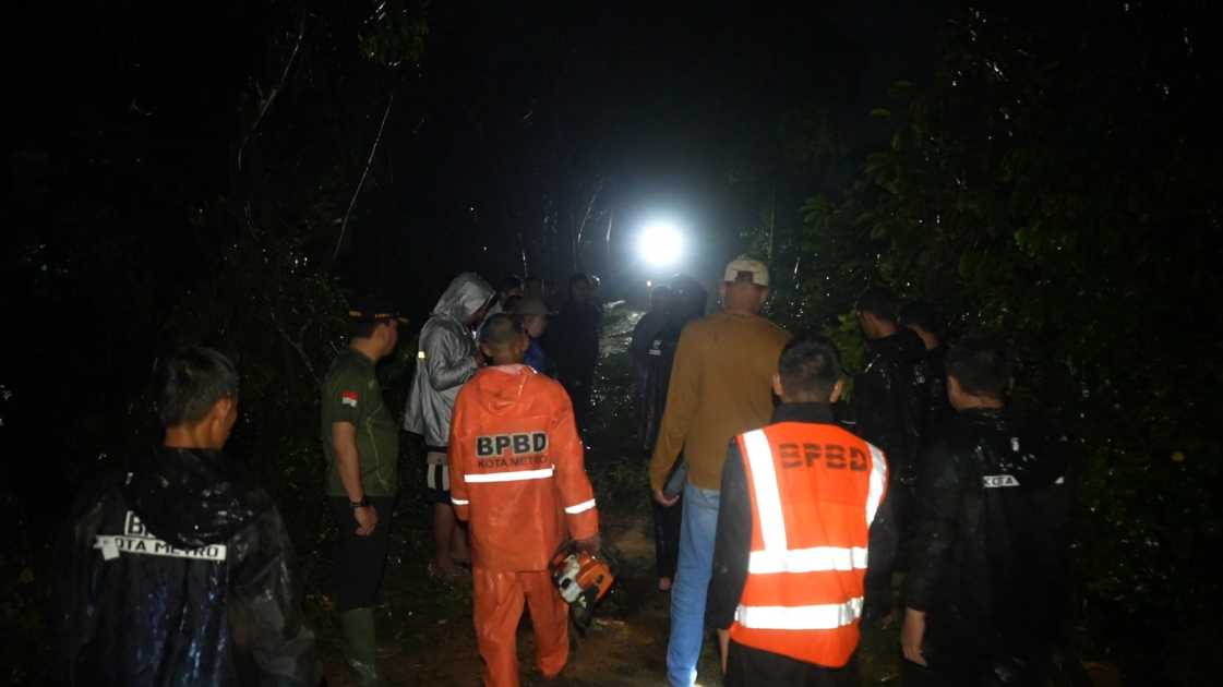 Metro – Hujan deras disertai angin kencang yang melanda sebagian wilayah Kota Metro pada Sabtu malam, menyebabkan sejumlah pohon tumbang dan menutup akses jalan masyarakat (14/02/2026).