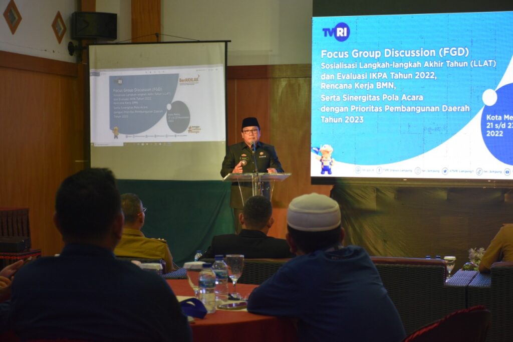 “Kedepannya Pemerintah Kota Metro dapat terus bekerjasama dan bersinergi untuk menentukan berbagai program, kegiatan masing-masing sehingga informasi terkait berbagai program pembangunan dapat tersampaikan dengan baik di masyarakat. Bismillahirohmannirohim Kegiatan Focus Group Discusion (FGD) Sosialisasi Langkah-langkah Akhir Tahun dan Evaluasi IKPA Tahun 2022, Rencana Kerja BMN Tahun 2023 serta Sinergitas Pembangunan Provinsi Lampung dengan Pola Acara Tvri Lampung Tahun 2023 secara resmi saya nyatakan resmi di buka, ” tutup Wahdi dalam sambutannya.