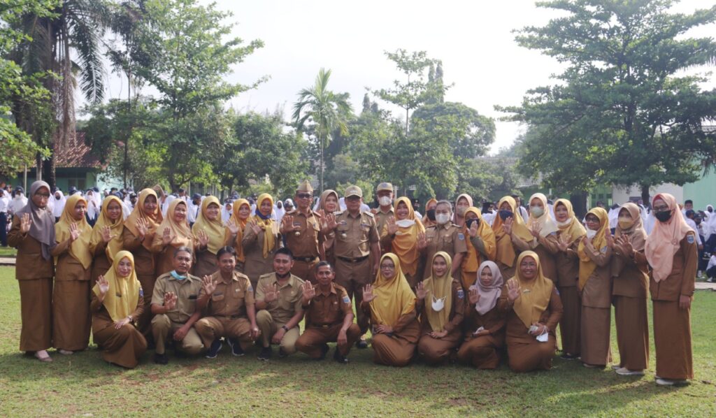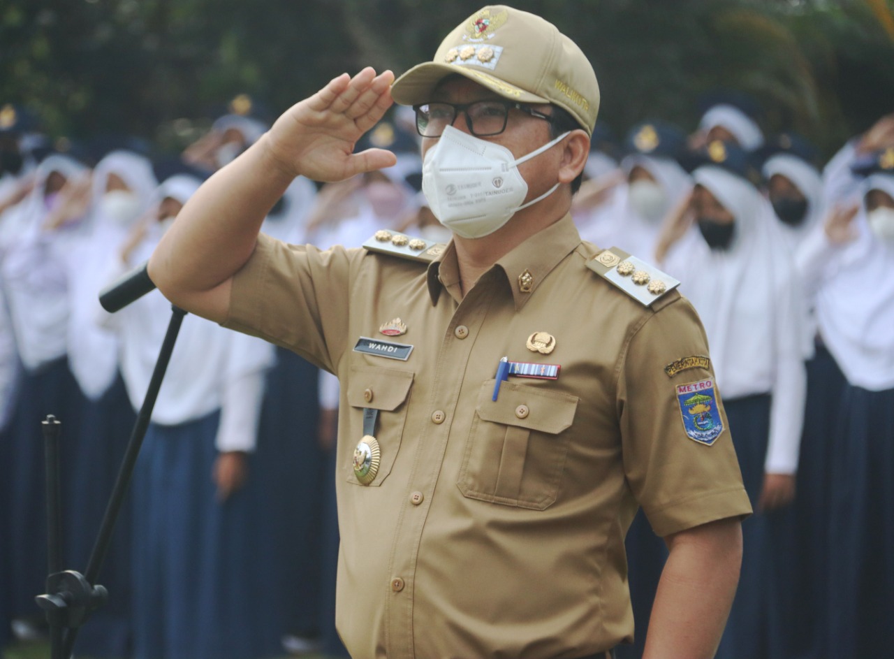 Walikota Metro Wahdi menjadi pembina upacara dalam rangka pembinaan dan pendidikan karakter serta kedisiplinan Siswa SMP Negeri 8 Metro, Senin (12/09/2022).