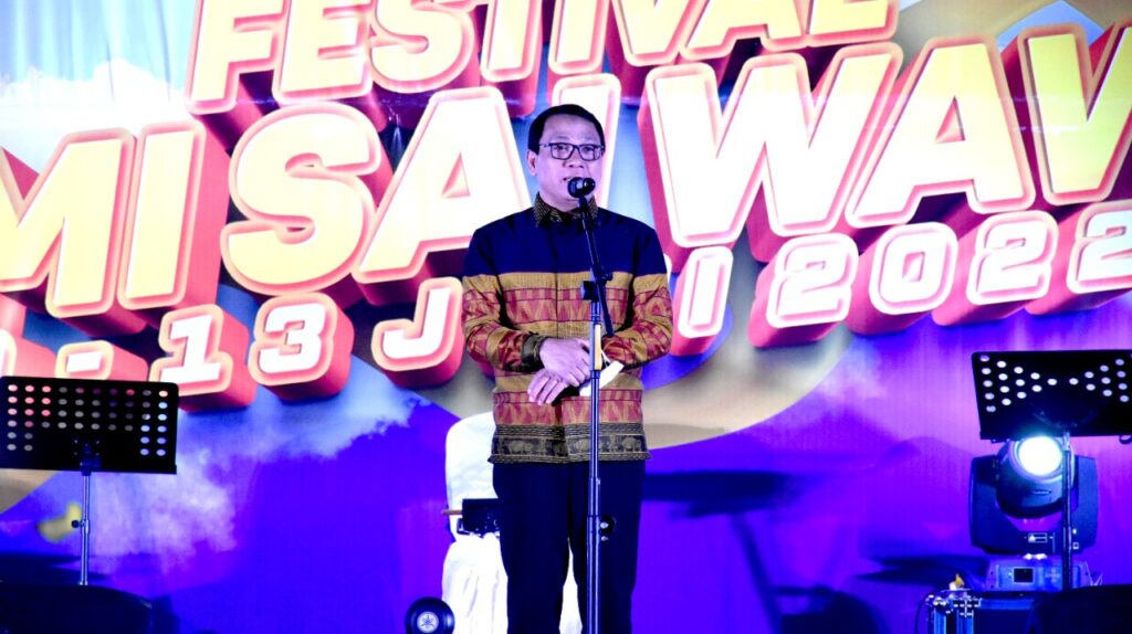 Walikota Metro Wahdi memberikan sambutan dalam acara Parade Wastra (Kain Warisan Nusantara) khas Kota Metro, dalam Fashion Show yang merupakan rangkaian acara dari Gebyar HUT Kota Metro ke- 85, yang diikuti oleh Dekranasda Kota Metro, IDI (Ikatan Dokter Indonesia) Kota Metro, dan IIDI (Ikatan Istri Dokter Indonesia) Kota Metro. Kegiatan tersebut berlangsung di Gedung Sessat Agung Bumi Sai Wawai Kota Metro, Minggu (12/06/2022).
