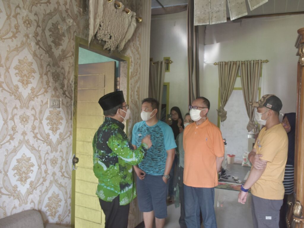 Walikota Metro Wahdi didampingi Camat Metro Pusat Yahya Rahmat melakukan peninjauan lokasi rumah kebakaran yang terjadi di Jalan Panda 22 Hadimulyo Timur, Metro Pusat, Minggu (17/07/2022).