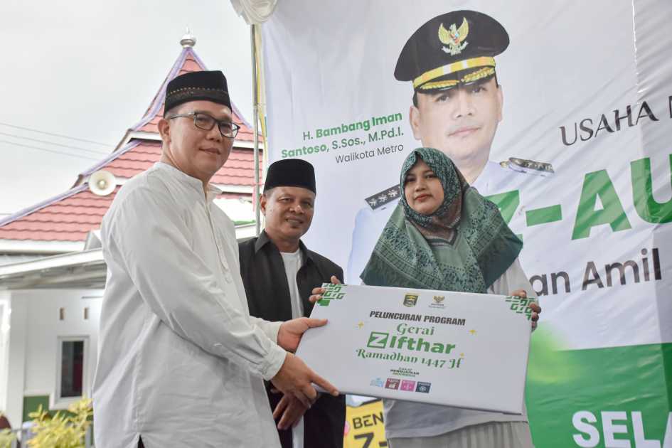 Pemerintah Kota Metro menghadiri peluncuran program Z-Ifthar dan Z-Auto yang digagas oleh BAZNAS Kota Metro di Masjid Al Hakim, Kelurahan Yosomulyo, Kecamatan Metro Pusat, Selasa (3/3/2026).
